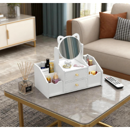 Duże szuflady pomieszczą wszystkie niezbędne przedmioty, a wbudowane lusterko pozwoli na zrobienie sobie makijażu. Liczne przegródki w górnej części organizera pozwolą schować wszystkie pędzle do makijażu i kosmetyki.